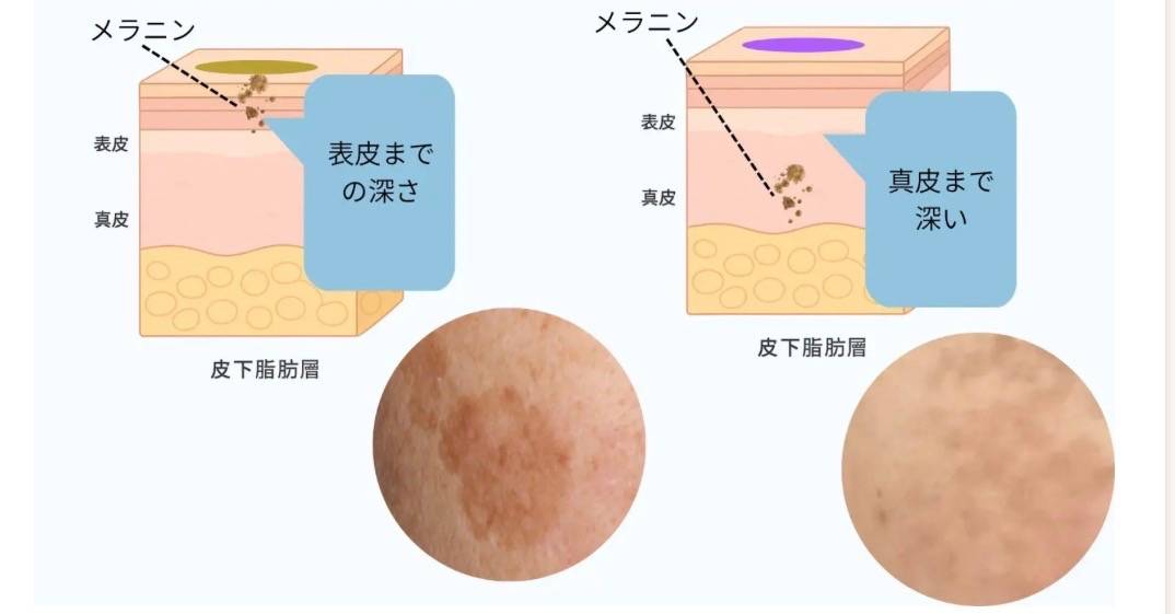 また、深層にあるシミにも効果がありません。通常、シミは表皮にしか存在しませんが、慢性的な紫外線ダメージによりメラニンが真皮へ落ち込んでしまうシミもあります。
